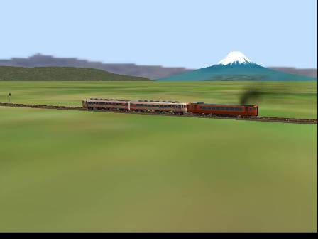 富士山の近くを気動車が通ってる様子